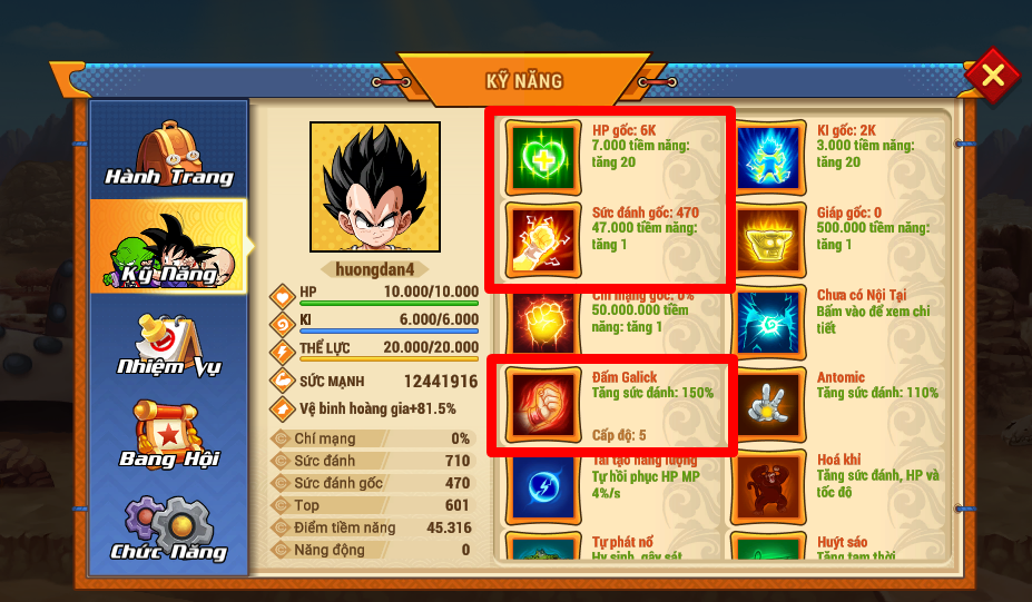 - Đạt trên 10M sức mạnh (farm quái thăng tiến sức mạnh). Công tiềm năng vào HP tối thiểu >5000HP, Sức đánh gốc >400