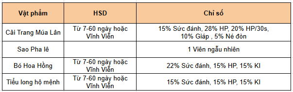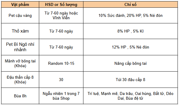 - 500 Điểm: x5 Đá bảo vệ (Khóa)