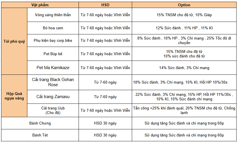 - Sau khi bắt thành công bạn sẽ phải đem Cậu Vàng về trả NPC tiệm phở Anh Vegeta để nhận ngẫu nhiên từ 1 - 5 Capsule Tết 2026 / lần