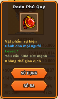 Người chơi sử dụng rada và farm quái ở tất cả các map để thu thập “Mảnh vỡ Ngọc rồng Phú Quý” -> Ghép Ngọc Rồng Phú Quý -> Ước ngọc rồng để nhận những điều ước giá cực giá trị