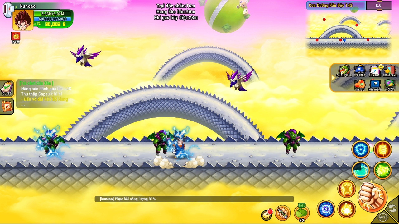 - Kaioken - Hi sinh HP và KI để tung ra những cú đấm với sức sát thương cực lớn