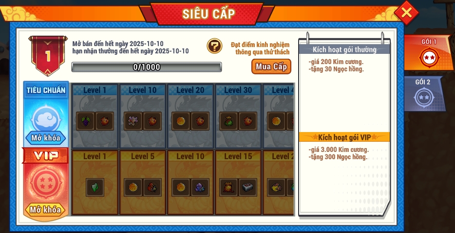- Quà tích tiêu, tích nạp: Nhận thưởng dựa trên mức tiêu và nạp trong game.