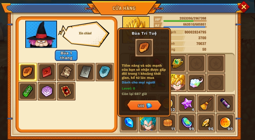 - Bùa hỗ trợ: Mua tại NPC Phù Thủy Hạt Mít, gồm 8 loại bùa giúp tăng cường khả năng thăng tiến sức mạnh.