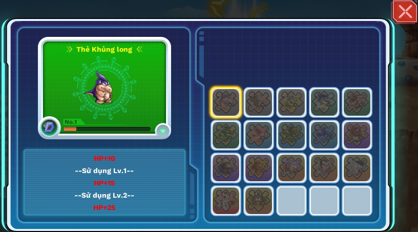 Tập hợp các mảnh để ghép, giúp cộng thêm chỉ số thuộc tính cho nhân vật. Các mảnh có thể kiếm bằng cách train quái hoặc tham gia vòng quay đặc biệt tại Map Thần Điện.