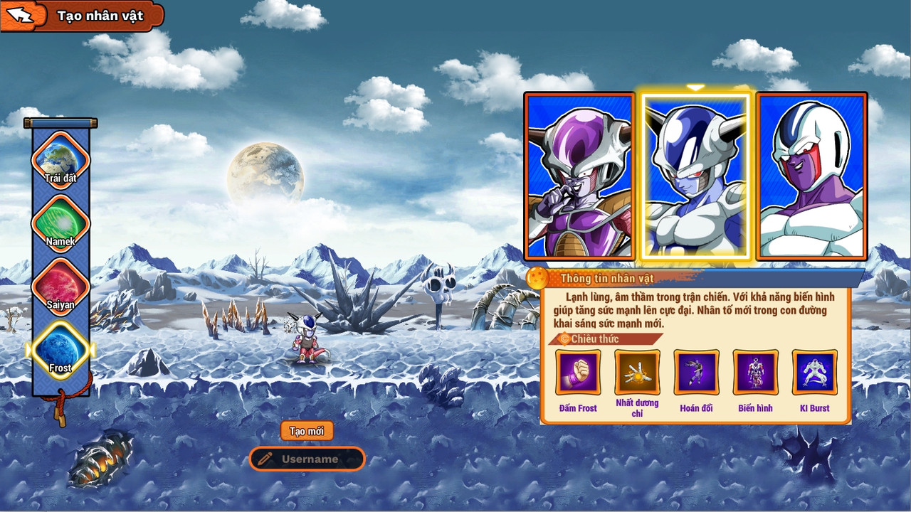 Mỗi hành tinh sở hữu bộ chiêu thức đặc trưng riêng. Bạn có thể nâng cấp chiêu thức và tiềm năng để trở thành siêu chiến binh mạnh nhất.