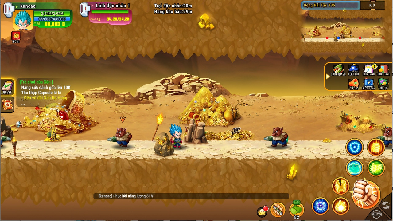 - Hóa Khỉ: Biến hình thành khỉ đột với lượng HP trâu bò và gia tăng sức đánh chí mạng khủng khiếp