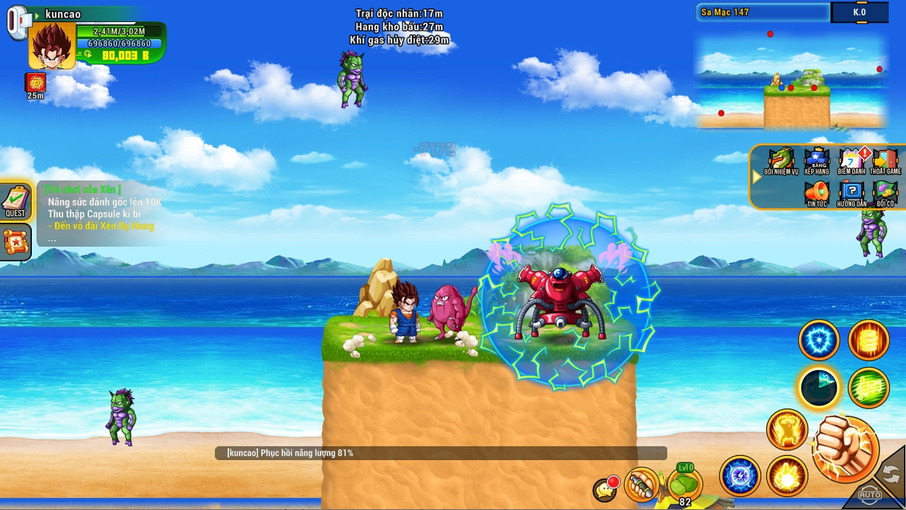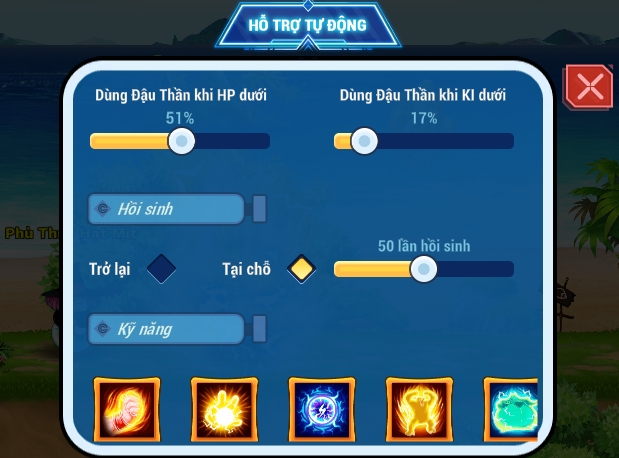 - Tái Tạo Năng Lượng: Hồi phục toàn bộ HP/KI trong thời gian ngắn