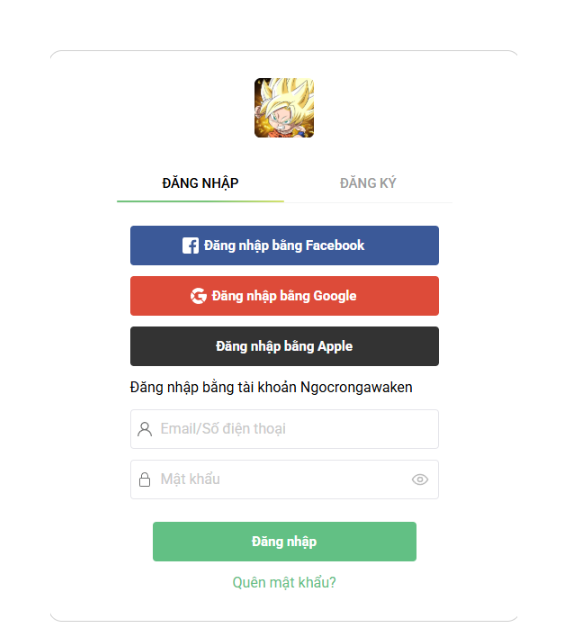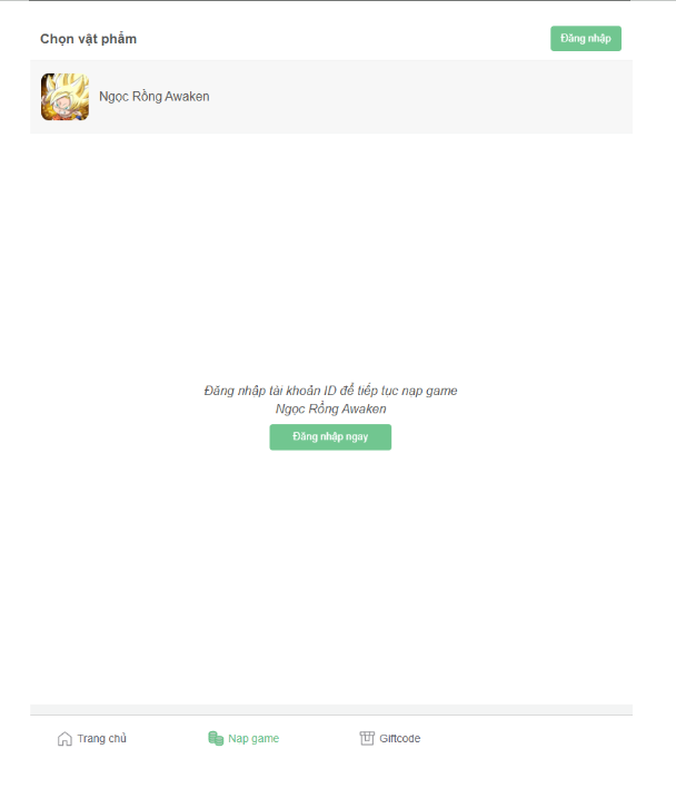Bước 1: Truy cập vào trang nạp chính thức của Ngọc Rồng Awaken: https://nap.ngocrongawaken.vn/
