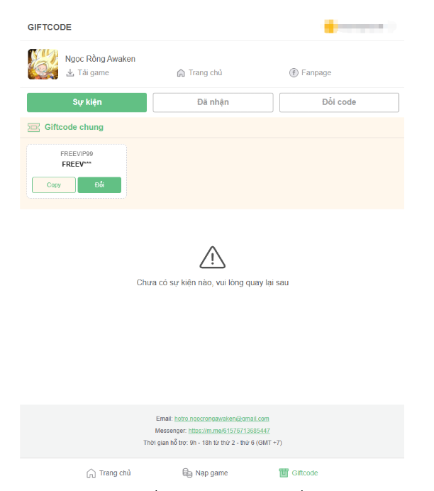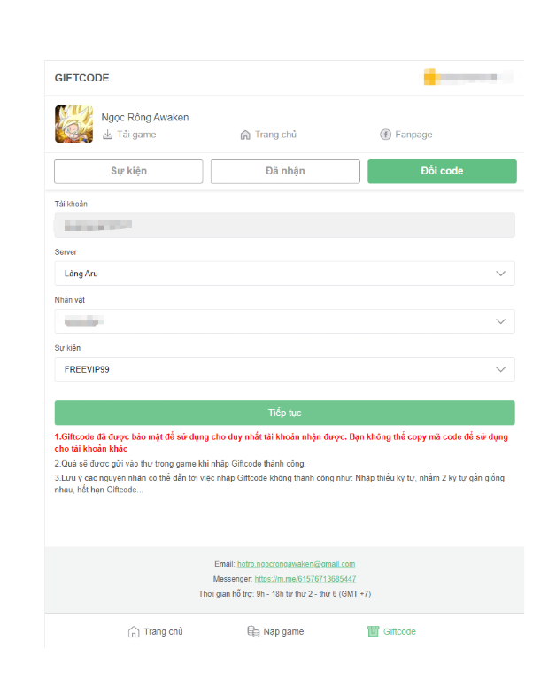 I - Hướng dẫn nhận Giftcode trên trang Giftcode Ngọc Rồng Awaken