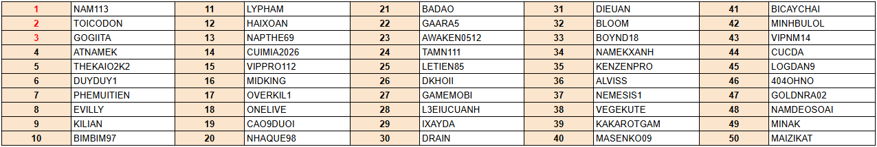 BQT xin tổng hợp lại các bảng xếp hạng đua top nổi bật trong sự kiện vừa qua để các chiến binh tiện theo dõi và đối chiếu kết quả.
