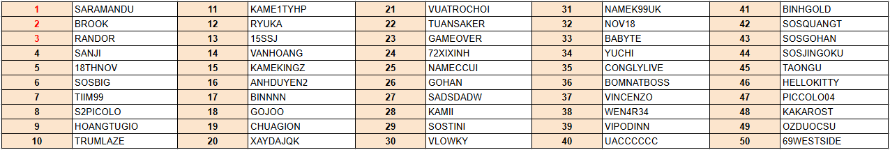 📢 VINH DANH TOP BXH SỰ KIỆN VÒNG QUAY PILAF GANG